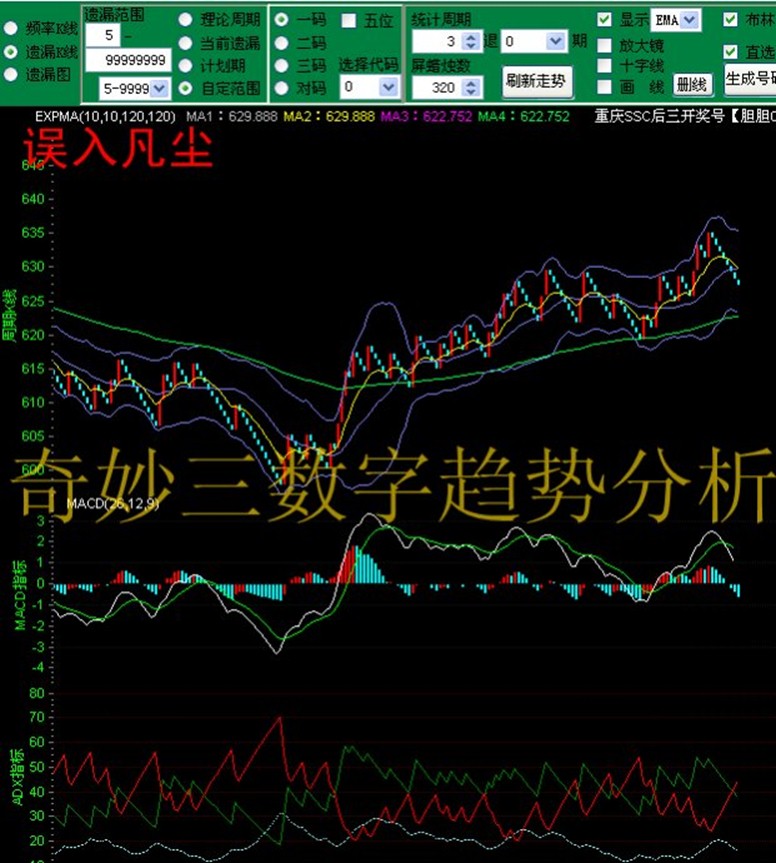 如果这段趋势向上连开,那么就预示未来要连续断0路。这时如果还是选择0路号码,无疑就是刀口舔血。只要这段趋势在中轨附近开出后,不是连续向上开出就可以,那么我的0路就还有机会。那么怎么可以规避这段趋势不连开呢?真愁人啊。